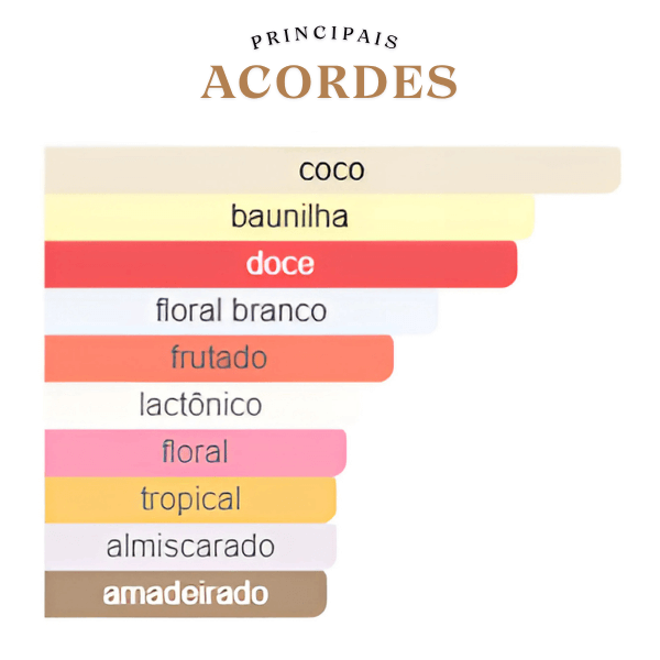 Island Bliss, de Armaf, é uma fragrância feminina que celebra a serenidade e o encanto de um paraíso tropical em uma assinatura olfativa Floral Frutada Gourmand. A fragrância se inicia com uma abertura vibrante e refrescante de Frutos Silvestres e Notas Verdes. No coração, o perfume revela uma harmonia exótica com a cremosidade do Coco e um delicado buquê de Flor de Laranjeira e Vitoria Régia, acompanhados de um toque suave e leitoso de Lactona. O fundo é uma fusão poderosa e persistente de Baunilha, Fava Tonka e Almíscar, que adicionam uma profundidade suave e uma longevidade impressionante. É um perfume que equilibra perfeitamente o frescor com a doçura gourmand e um toque de calor.