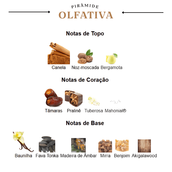 KHAMRAH, de Lattafa Perfumes, é uma fragrância compartilhável que celebra a intensidade e a doçura em uma assinatura olfativa Oriental Especiada. A fragrância se inicia com um coquetel vibrante e picante de Canela, Noz-moscada e Bergamota. No coração, o perfume revela um toque gourmand e exótico com notas de Tâmaras, Pralinê, Tuberosa e Mahonial. O fundo é uma fusão poderosa e persistente de Baunilha, Fava Tonka, Madeira de Âmbar, Mirra, Benjoim e Akigalawood, que adicionam uma profundidade resinosa, cremosa e uma longevidade impressionante.