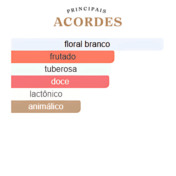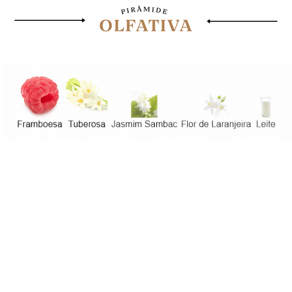 A jornada olfativa se inicia com uma explosão frutada, onde a framboesa se une à opulência da tuberosa e à delicadeza do jasmim. A fragrância se aprofunda com um toque de flor de laranjeira e a assinatura única do acorde de leite, que adiciona uma doçura cremosa e envolvente. O resultado é um rastro doce, sensual e inesquecível, que deixa uma impressão marcante e vibrante, como o próprio nome sugere.