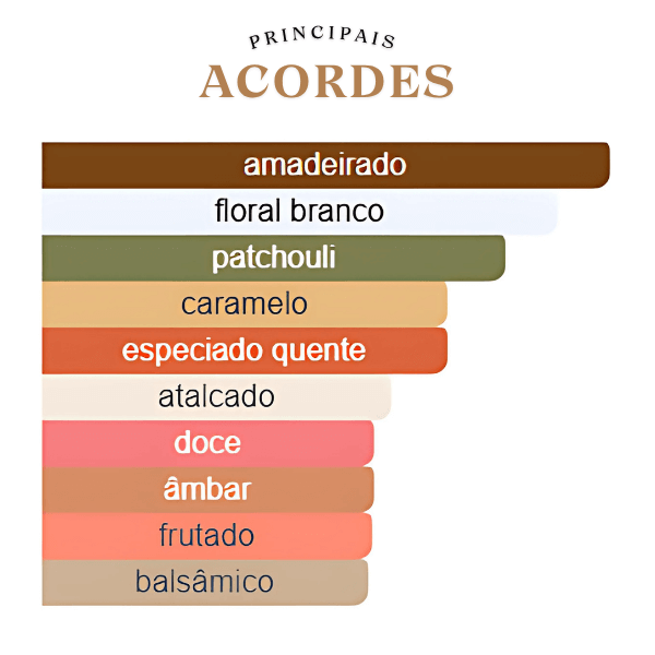 Yara Moi, de Lattafa Perfumes, é uma fragrância feminina que celebra a doçura e a elegância em uma assinatura olfativa Floral Gourmand. A fragrância se inicia com uma combinação suave e convidativa de Jasmim e Pêssego, que cria uma primeira impressão delicada e frutada. No coração, o perfume revela um acorde rico e quente de Caramelo e Âmbar, que adicionam uma camada de doçura e sofisticação. O fundo é uma fusão poderosa e persistente de Patchouli e Sândalo, que conferem uma profundidade terrosa, amadeirada e uma longevidade impressionante. É um perfume que equilibra perfeitamente a doçura com a riqueza floral e um toque de calor.