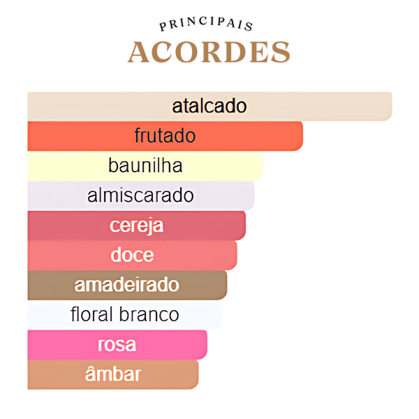Yum Yum, de Armaf, é uma fragrância feminina que celebra a doçura e a delicadeza em uma assinatura olfativa Floral Frutada. A fragrância se inicia com uma explosão suculenta de Frutos Silvestres, Cereja, Laranja e Bergamota, que criam uma primeira impressão vibrante e frutada. No coração, o perfume revela um acorde cremoso e suave de Baunilha, Flores Brancas e Rosa, que adicionam uma camada de doçura e romance. O fundo é uma fusão poderosa e persistente de Notas Atalcadas, Almíscar e Âmbar, que conferem uma profundidade aveludada e uma longevidade impressionante. É um perfume que equilibra perfeitamente a doçura frutada com a riqueza floral e um toque de calor.