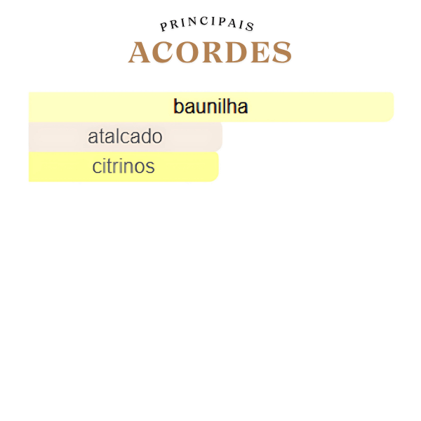 Este perfume traduz a essência de uma alma magnética, que não tem medo de ser notada. A fragrância evoca uma aura de calor e conforto, com um toque irresistível de sensualidade. É a assinatura de alguém que se destaca em meio à multidão, deixando um rastro de elegância e bom gosto.