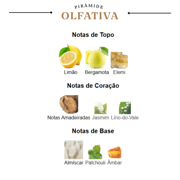 L'AVENTURE, de Al Haramain Perfumes, é uma fragrância masculina que celebra a ousadia e a masculinidade em uma assinatura olfativa Chipre Frutada. A fragrância se inicia com um toque fresco e cítrico de Limão, Bergamota e Elemi. No coração, o perfume revela um buquê amadeirado e floral de Notas Amadeiradas, Jasmim e Lírio-do-Vale, que adicionam uma camada de elegância e sofisticação. O fundo é uma fusão poderosa e persistente de Almíscar, Patchouli e Âmbar, que conferem uma profundidade terrosa, sensual e uma longevidade impressionante.