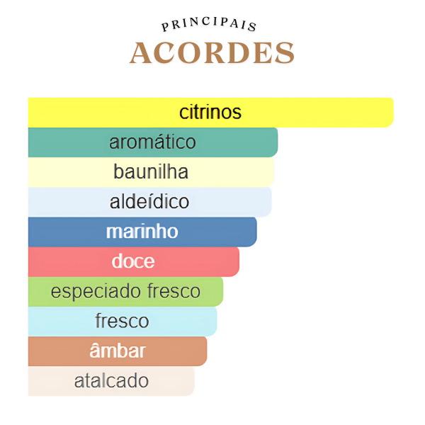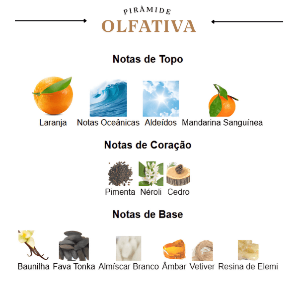 No coração, o perfume revela um acorde picante de pimenta preta, harmonizado com o frescor floral do néroli e a elegância do cedro. A base é construída com notas sensuais de baunilha, fava tonka, almíscar branco e âmbar, que deixam um rastro sedutor, limpo e duradouro. É o perfume ideal para o homem que busca uma fragrância elegante, versátil e cheia de energia.