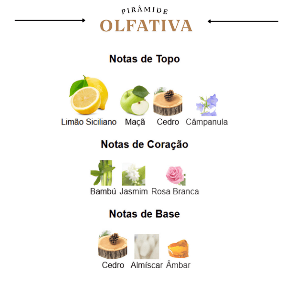 O Perfume Brand Collection 093 é uma fragrância Floral Frutada que evoca a sensação de um verão inesquecível na costa italiana. Sua abertura é uma explosão refrescante de limão siciliano e maçã verde, combinada com notas amadeiradas de cedro. No coração, a leveza do bambu e a delicadeza do jasmim e da rosa branca criam uma feminilidade suave e agradável. A base de cedro, almíscar e âmbar sela a fragrância com um rastro limpo, refrescante e duradouro, perfeito para o dia a dia.