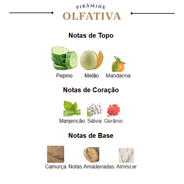 O Perfume Brand Collection 174 é uma fragrância Aromática Fougère que evoca a sensação de liberdade do céu azul e a energia das águas abertas. Ele se inicia com uma explosão fresca e revigorante de melão, pepino e mandarina, criando uma abertura aquática e vibrante. No coração, o perfume revela um acorde sofisticado e elegante com manjericão, sálvia e gerânio, que adicionam uma dimensão aromática e terrosa. A base é finalizada com uma fusão quente e sensual de camurça, notas amadeiradas e almíscar, que deixam um rastro masculino e inesquecível. É a escolha perfeita para o homem que busca uma fragrância versátil e de destaque, ideal para todas as ocasiões.