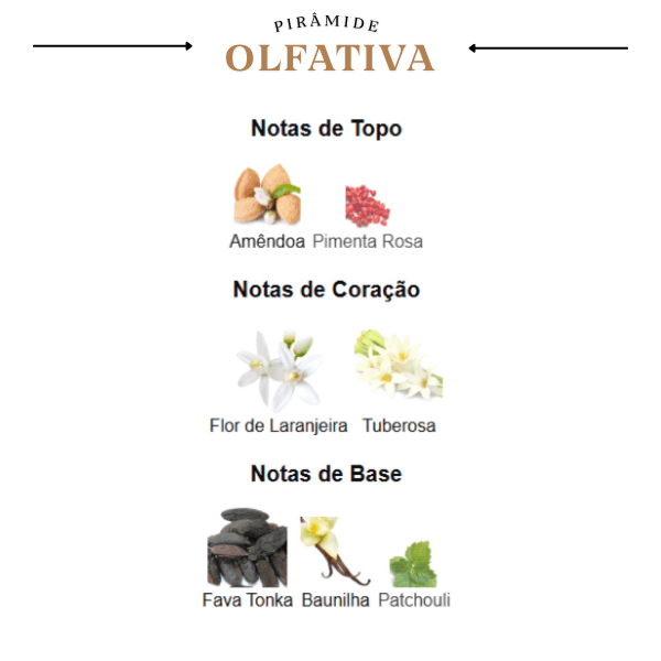 O Perfume Brand Collection 357 é uma fragrância que celebra a noite com mistério e sedução. Sua essência oriental floral se inicia com uma combinação intrigante de amêndoa e pimenta rosa, que dá um toque vibrante e ousado. No coração, o buquê floral de tuberosa e flor de laranjeira exala uma feminilidade poderosa. Por fim, a base de fava tonka, baunilha e patchouli cria um rastro inesquecível e luxuoso, ideal para a mulher que domina a noite.