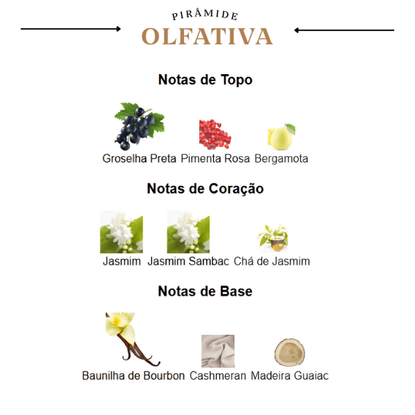 O Perfume Brand Collection 391 é uma fragrância Floral Amadeirada que celebra a beleza da autoexpressão e a força da mulher moderna, nascida para ser livre. Sua essência se inicia com a fusão picante e frutada da groselha preta e da pimenta rosa, suavizada pela vivacidade da bergamota. No coração, o perfume revela um luxuoso e triplo acorde de jasmim, composto por jasmim sambac, jasmim puro e chá de jasmim, que confere uma feminilidade radiante e intensa. A base é finalizada com a doçura viciante da baunilha de bourbon, que se une ao toque macio do cashmeran e à profundidade da madeira guaiac, deixando um rastro inesquecível e sofisticado. É a escolha perfeita para a mulher que busca uma fragrância elegante e duradoura, ideal para marcar presença em qualquer ocasião.