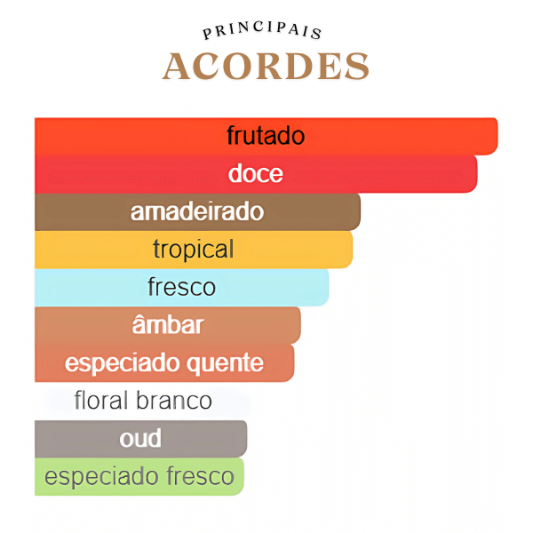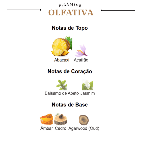 Qaed Al Fursan, da Lattafa Perfumes, é uma fragrância masculina que celebra o mistério e a alegria em uma assinatura olfativa Oriental Amadeirada. Sua abertura de Abacaxi e Açafrão cria uma primeira impressão tropical e vibrante, como um suco fresco em um dia quente. O coração se aprofunda com uma mistura surpreendente de Bálsamo de Abeto e Jasmim, que se unem para um toque amadeirado e floral. A base de Âmbar, Cedro e Agarwood (Oud) confere uma profundidade ambarada, sensual e uma longevidade impressionante. É um perfume que equilibra perfeitamente as notas frutadas com a doçura e a densidade das notas de fundo.